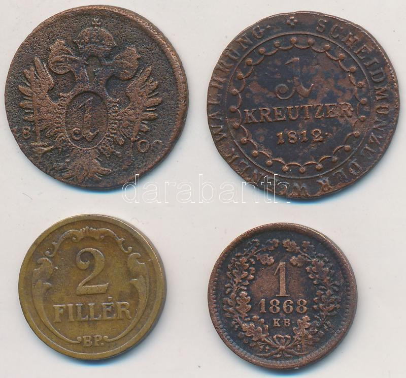 Vegyes: 1800E 1kr Cu + 1812S 1kr Cu + 1868KB 1kr Cu "Angyalos címer" + 1933. 2f Br T:2-,3