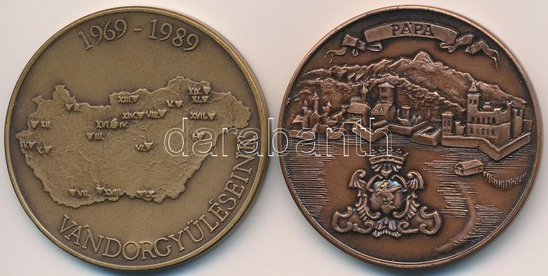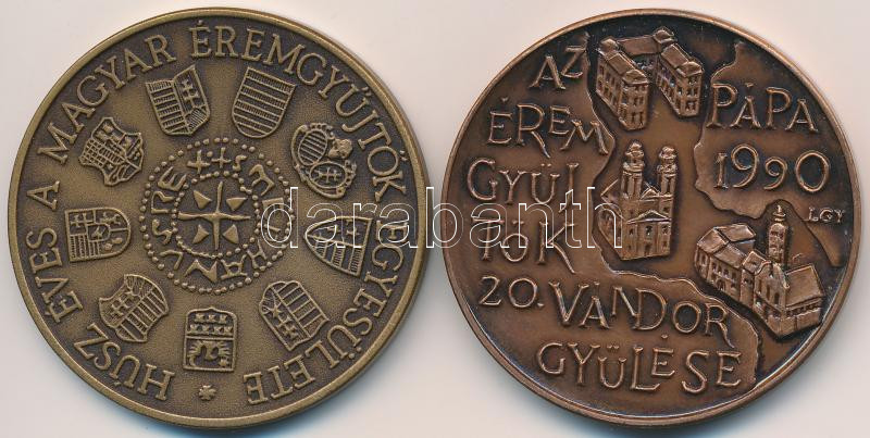 Bognár György (1944-) 1989. "20 éves a Magyar Éremgyűjtők Egyesülete / 1969-1989 Vándorgyűléseink" Br emlékérem (42,5mm) + Lantos Györgyi (1953-) / Szabó Géza (1939-) 1990. "MÉE 20. Vándorgyűlése - Pápa" Br emlékérem (42,5mm) T:1