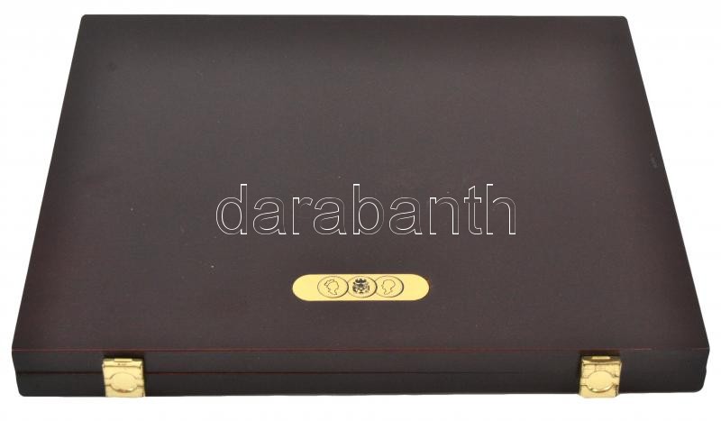 Fa borítású, bársony bélésű érmetartó kazetta 14db, több klf méretű fé...