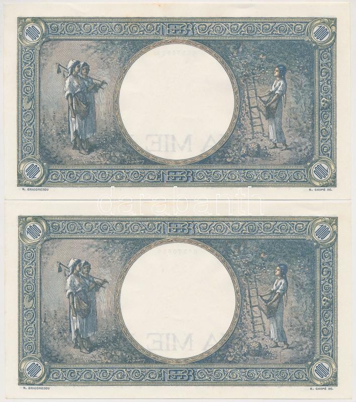 Romania 1943. 1000 Lei (2x) sequential serials C:UNC,AU