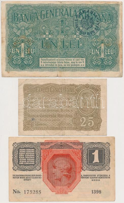 Románia / Német megszállás 1917. 25b + 1L román felülbélyegzéssel + Ma... https://www.darabanth.com/en/261-Online-auction/261.0/Numismatics/Worldwide-banknotes~300012/Romania-Nemet-megszallas-1917-25b-plus-1L-roman-felulbelyegzessel-plus-Magyarorszag-1917-2K-r~II1289345