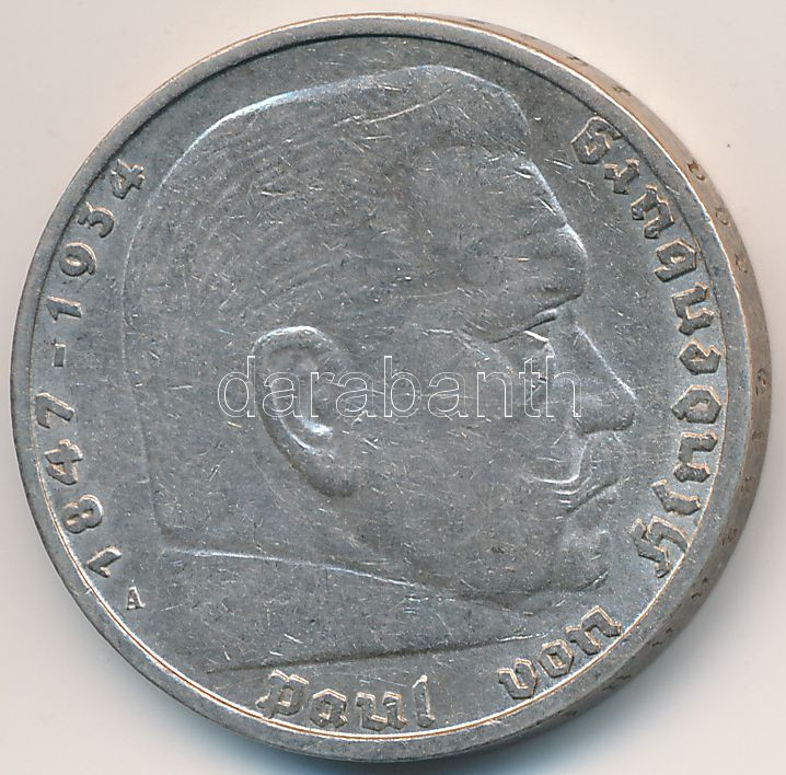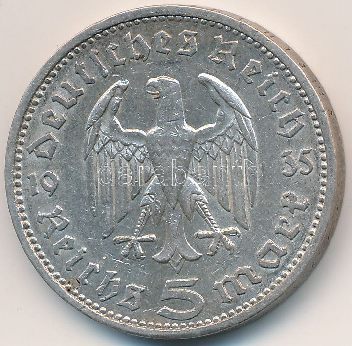 https://www.darabanth.com/en/261-Online-auction/261.0/Numismatics/Worldwide-silver-and-metal-coins~300013/Nemet-3-Birodalom-1935A-5M-Ag-Hindenburg-T2-2---German-Third-Reich-1935A-5-Marks-Ag-Hindenburg~II1268709