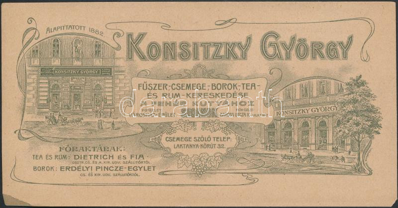 https://www.darabanth.com/en/261-Online-auction/261.0/Other-collectibles/Advertisement~19/cca-1910-Konsitzky-Gyorgy-fuszerkereskedese-a-Feher-Kutyahoz-Szolnok-diszes-szecesszios-szC3~II1294238