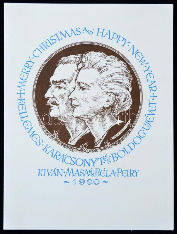 1990 Petry Béla (1902-1996) grafikus és felesége karácsonyi-újévi üdvö...
