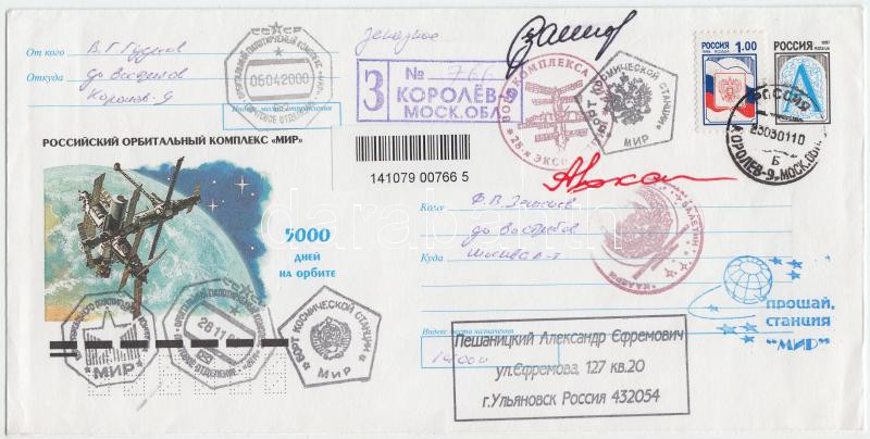 Description: Alekszandr Kaleri (1956- ) Szergej Zaljotin (1962- ) orosz űrhajósok aláírásai emlékborítékon /