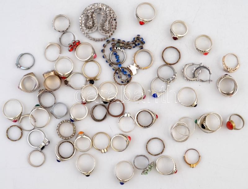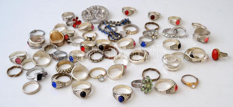 Bizsu gyűrű tétel, 61db, különböző méretben és minőségeben