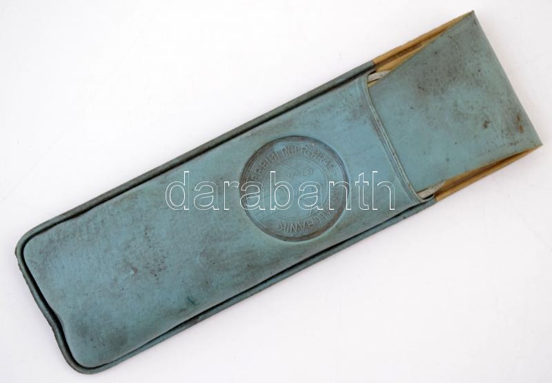 Gördülő távolságmérő, német nyelvű leírással, kissé megviselt tokkal