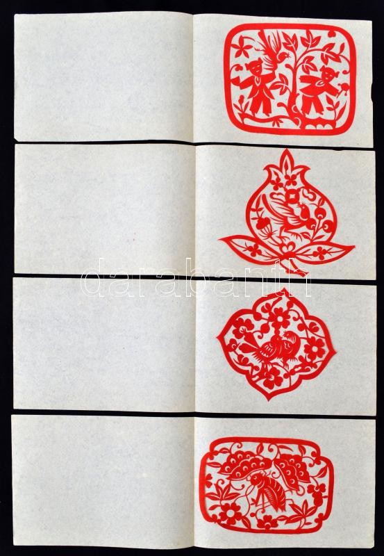 Modern kínai papírkivágások (jianzhi), papír mappába rendezve /