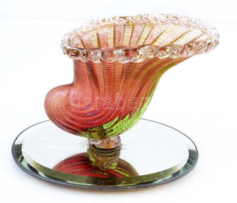 Színes üveg bőségszaru, tükör talapzaton, hibátlan, m: 16 cm