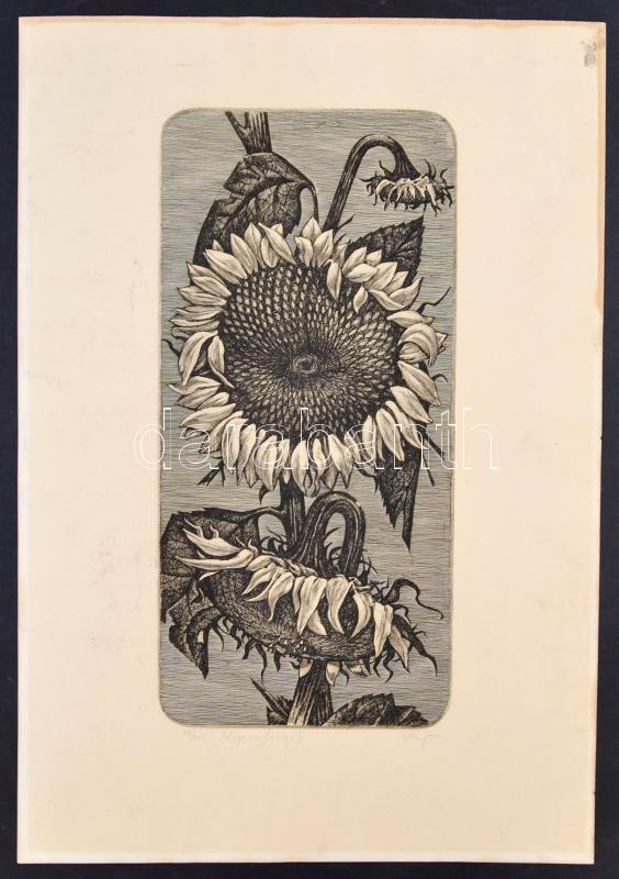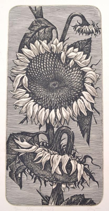 Varga Bencsik József (1944-): Napraforgó. Rézkarc, papír, jelzett, 41×...