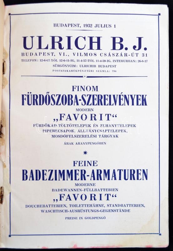 1932 Ulrich B. J. Budapest, árjegyzék finom fürdőszobaszerelvényekről,...