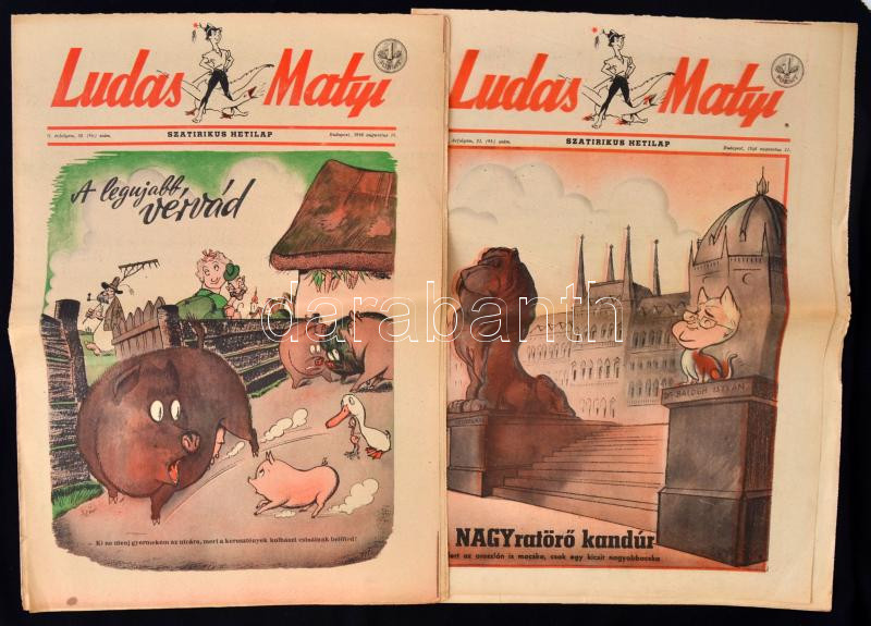 https://www.darabanth.com/en/261-Online-auction/261.0/Other-collectibles/Printed-Materials~29/1946-Ludas-Matyi-Szatirikus-hetilap-5-szama-pp8-42x30cm~II1290733