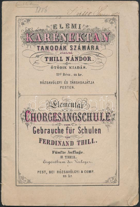 cca 1886 Elemi karénektan tanodák számára szerzé Thill Nándor. Rózsavölgyi és Társasajátja. Kiadói papír kötésben, pp.:12, 23x16cm