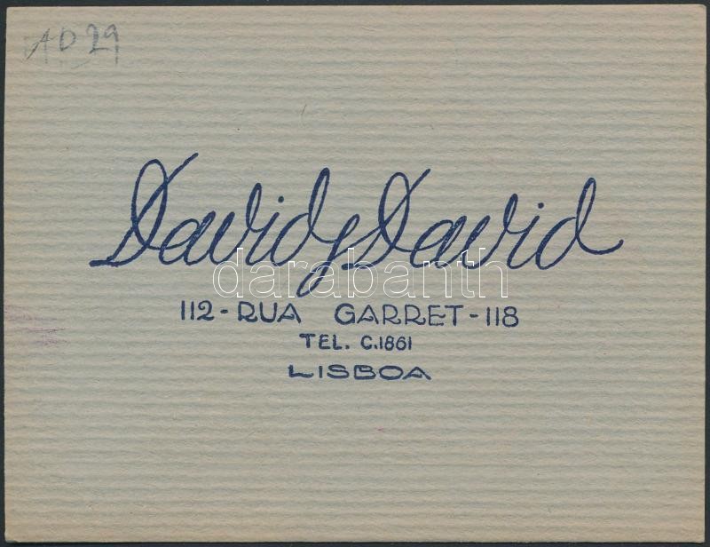 cca 1910 Lissaboni ágyneműbolt kézzel festett reklámlártyája / Pochoir art Deco Lisboa Store DAVID & DAVID 13x9 cm