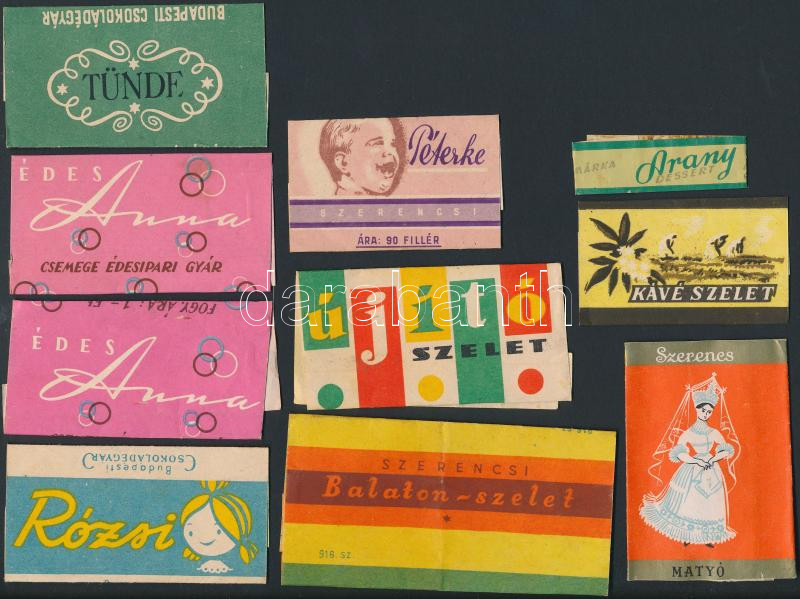 cca 1960-70 Magyar, retró csokoládépapírok, különböző méretben, 10db / chocolate papers