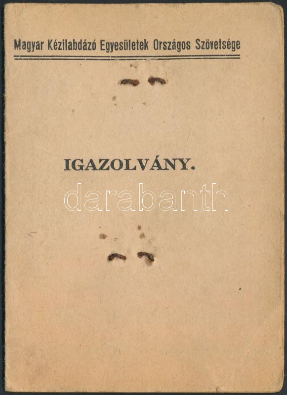 https://www.darabanth.com/en/261-Online-auction/261.0/Other-collectibles/~27/1933-Magyar-Kezilabdazo-Egyesuletek-Orszagos-Szovetsege-arckepes-igazolvany-11x8cm~II1289456