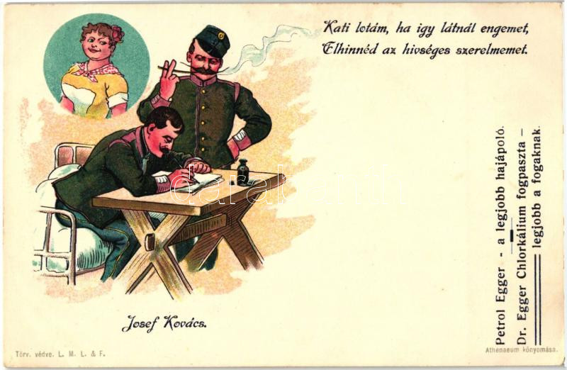 Josef Kovács; Athenaeum L.M.L. & F., Petrol Egger hajápoló és Dr. ... https://www.darabanth.com/en/261-Online-auction/261.0/Postcards/Advertisement~400088/Josef-Kovacs-Athenaeum-LML-F-Petrol-Egger-hajapolo-es-Dr-Egger-chlorkalium-fogpaszta-r~II1295688