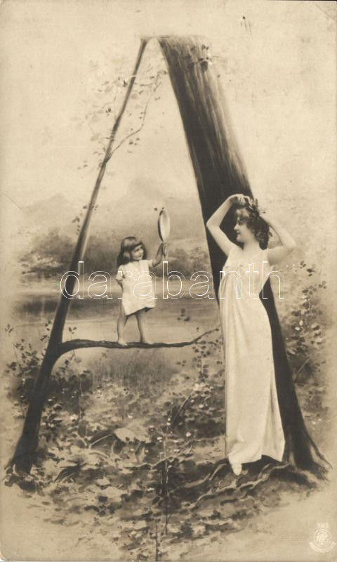 Letter 'A', Lady with child, greeting card series, NPG Series 195. (EK)