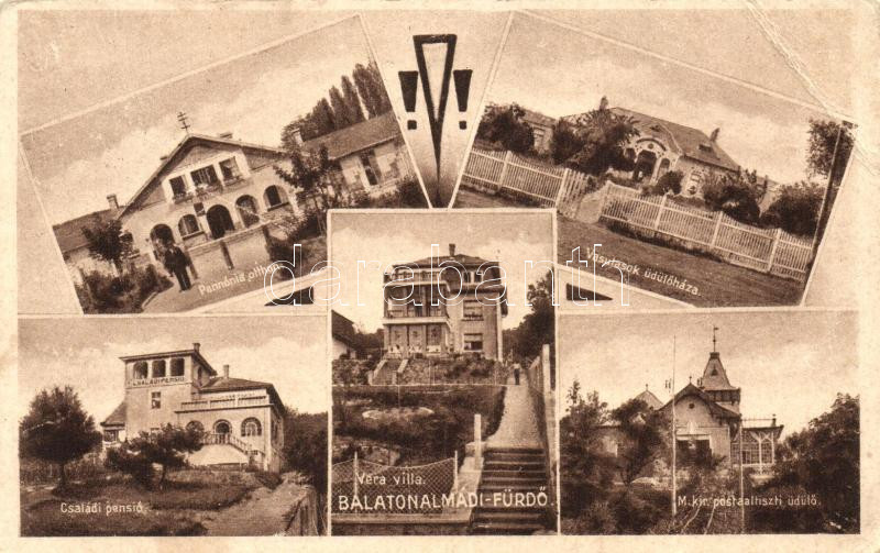 Balatonalmádi-Fürdő, Pannónia otthon, Vasutasok üdülőháza, Magyar Királyi postatiszti üdülő, Vera villa, Családi pensió (EB)