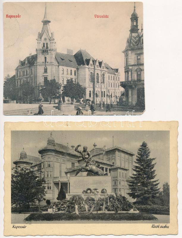https://www.darabanth.com/en/261-Online-auction/261.0/Postcards/Hungary~400006/Kaposvar--2-db-regi-kepeslap-Varoshaza-es-a-Hosok-szobra-az-egyik-erosen-vagott~II1287958