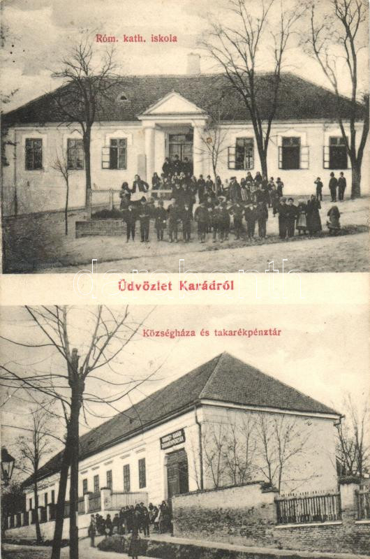 Karád, Római katolikus iskola, Községháza, takarékpénztár, kiadja Wolf...