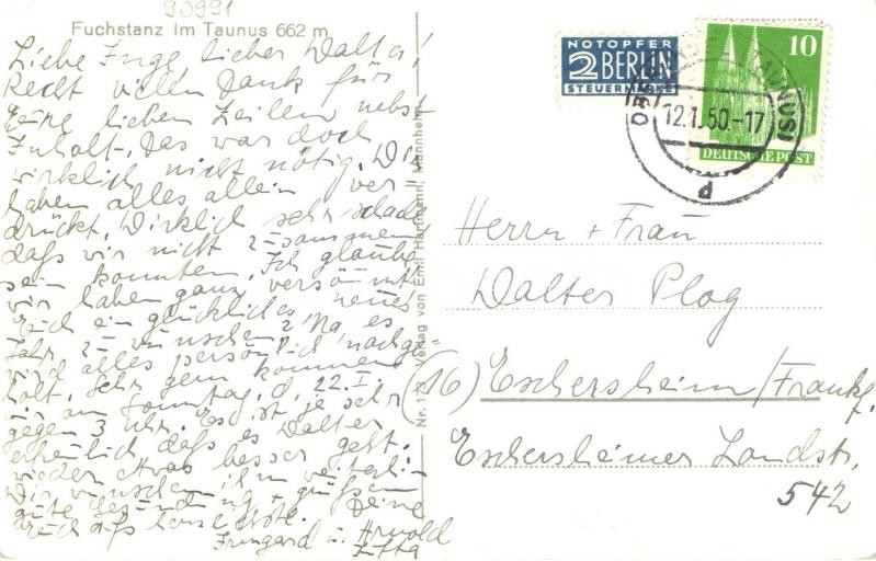 Fuchstanz Im Taunus; Gasthaus Fuchstanz / restaurant with anti-semitic 'Juden keinen zutritt' sign, posted in 1950 (EK)