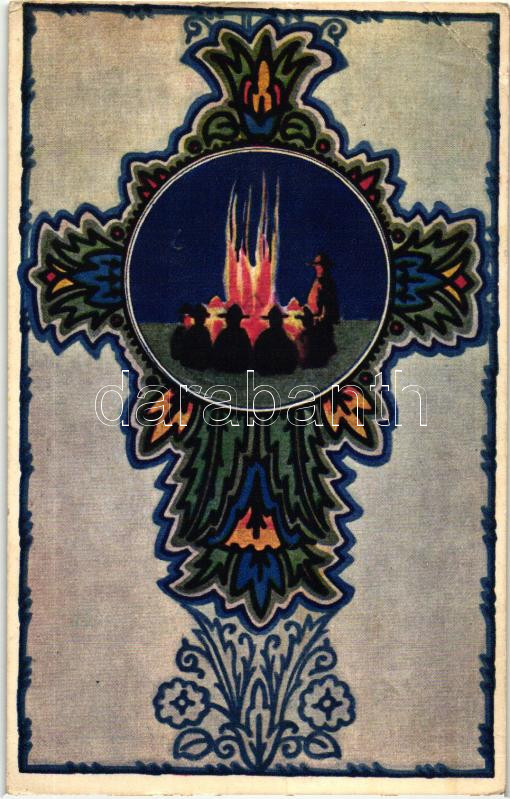 A budapesti Szent Imre cserkész csapat képeslapja / Hungarian scout postcard s: Megyer M. Attila (ázott / wet damage)