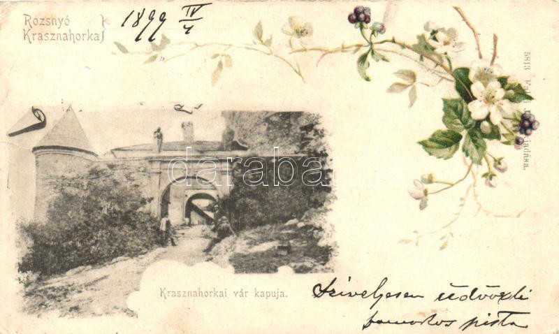 1899 Krasznahorka, Várkapu; kiadja Falvi Jenő/ floral litho (Rb)