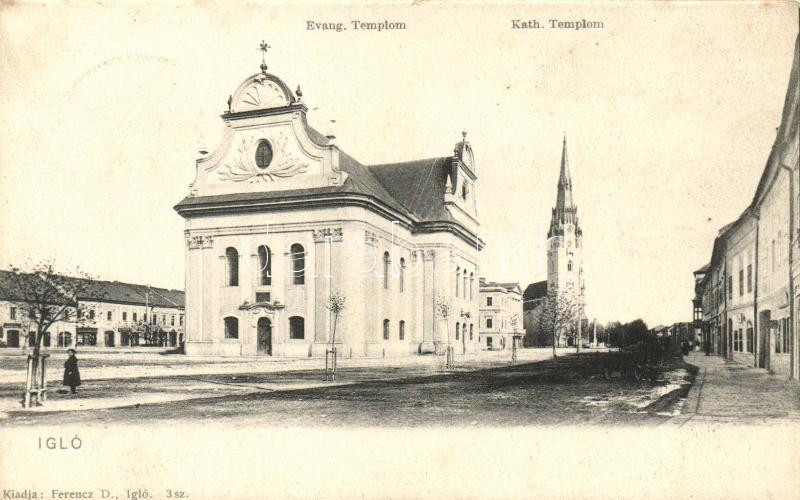 Igló, Iglau, Spisská Nová Ves; Evangélikus és katolikus templom / church