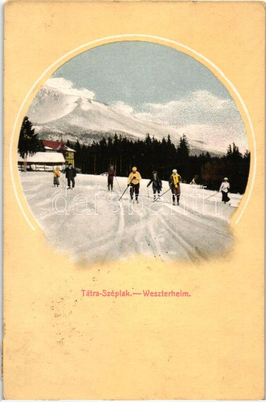Tátraszéplak, Weszterheim, Tatranska Polianka; síelők, Feitzinger Ede ...