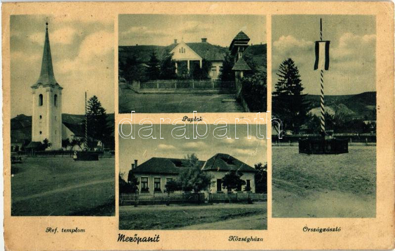 Mezőpanit, Panet; Községháza, paplak, országzászló, Református templom...