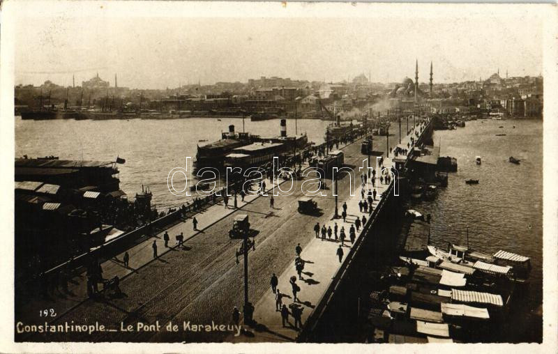 Constantinople, Istanbul; Karakeuy bridge, ships, tram