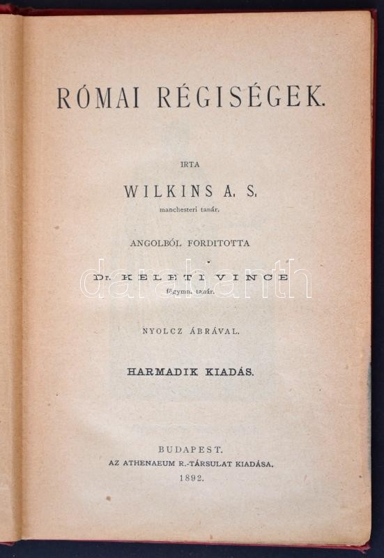 A. S. Wilkins: Római régiségek. Bp., 1892, Athenaeum. Kopottas-foltos kiadói egészvászon-kötésben, több helyütt sűrű ceruzás aláhúzások.