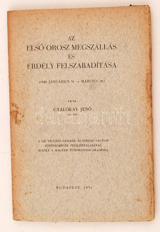 Gyalókay Jenő: Az első orosz megszállás és Erdély felszabadítása (1849... https://www.darabanth.com/en/262-Online-auction/262.0/Books/Books-History~27/Gyalokay-Jeno-Az-elso-orosz-megszallas-es-Erdely-felszabaditasa-1849-januar-31-marcius~II1252508