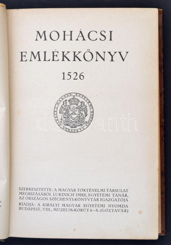Mohácsi emlékkönyv 1526. Szerk. A Magyar Történelmi Társulat megbízásá... https://www.darabanth.com/en/262-Online-auction/262.0/Books/Books-History~27/Mohacsi-emlekkonyv-1526-Szerk-A-Magyar-Tortenelmi-Tarsulat-megbizasabol-Lukinich-Imre-B~II1303499