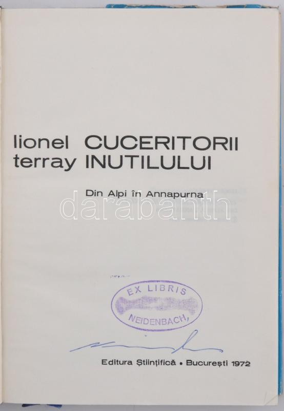 Terray, Lionel: Cuceritorii inutilului. Din Alpi în Annapurna. Bukares... https://www.darabanth.com/en/262-Online-auction/262.0/Books/Books-Mountaineering-and-winter-sports~23/Terray-Lionel-Cuceritorii-inutilului-Din-Alpi-C3AEn-Annapurna-Bukarest-1972-Editura-C59EtiinC5A3ific~II1279457