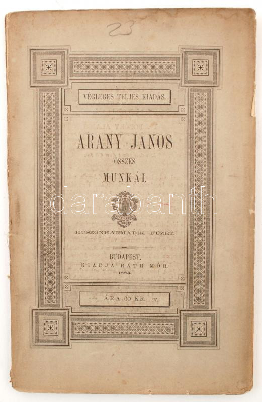 Arany János összes munkái. Végleges teljes kiadás. Huszonharmadik füze... https://www.darabanth.com/en/262-Online-auction/262.0/Books/Books-Other-rarities~45/Arany-Janos-osszes-munkai-Vegleges-teljes-kiadas-Huszonharmadik-fuzet-Budapest-Rath-Mor-~II1031496