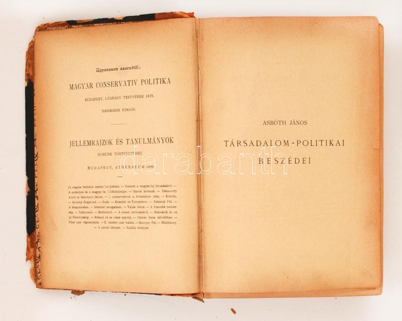 Asbóth János társadalom-politikai beszédei. Bp., 1898, Szent-Gellert-n... https://www.darabanth.com/en/262-Online-auction/262.0/Books/Books-Other-rarities~45/Asboth-Janos-tarsadalom-politikai-beszedei-Bp-1898-Szent-Gellert-nyomda-XXIV-640-p-Kiado~II1303996