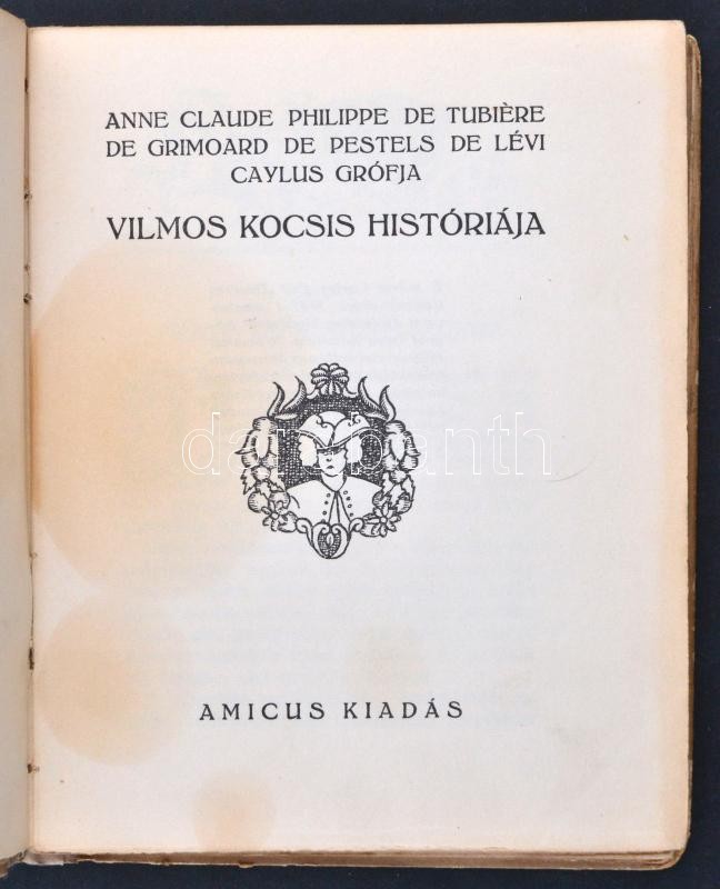 Caylus grófja: Vilmos kocsis históriája. Bp., 1920, Amicus. 80 p. A kö... https://www.darabanth.com/en/262-Online-auction/262.0/Books/Books-Other-rarities~45/Caylus-grofja-Vilmos-kocsis-historiaja-Bp-1920-Amicus-80-p-A-konyvdiszeket-Reiter-Laszl~II1294922