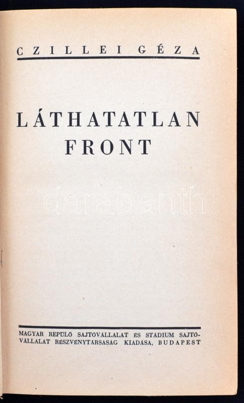 Czillei Géza: Láthatatlan front. Bp., 1942, Stádium 211 p. Kiadói félv...