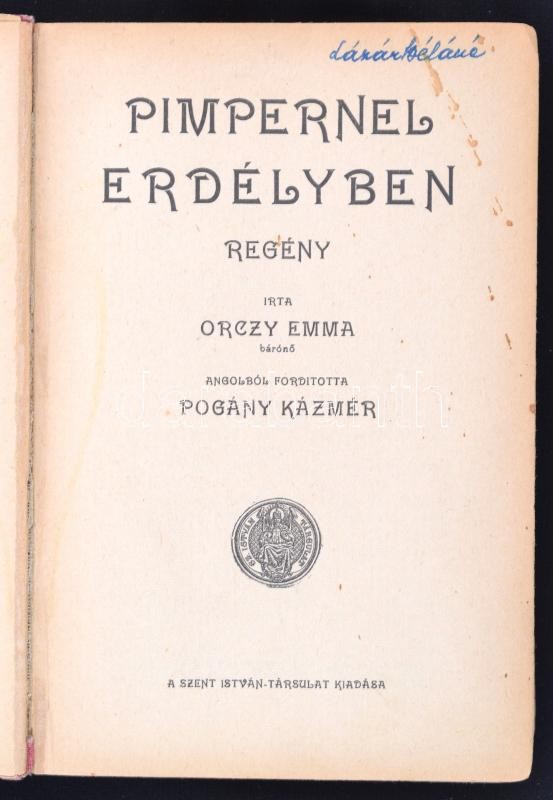 Orczy Emma: Pimpernel Erdélyben. Ford. Pogány Kázmér. Bp., 1927, Szt. ...