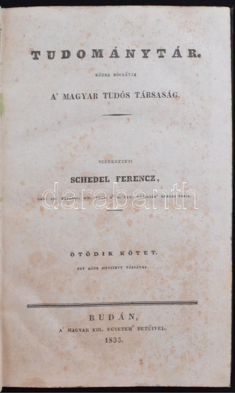 Description: Tudománytár: Közre bocsátja a' Magyar Tudós Társaság. Szerk. Schedel Ferencz. Ötödik kötet. Budán, 1835. M. Kir. Egyetem betűivel. 268 p.