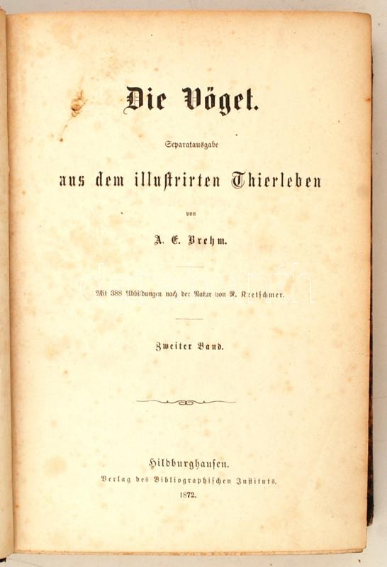 Alfred Edmund Brehm: Die Vögel. Separatausgabe aus dem illustrirten Th... https://www.darabanth.com/en/262-Online-auction/262.0/Books/Books-Science-and-technology~35/Alfred-Edmund-Brehm-Die-Vogel-Separatausgabe-aus-dem-illustrirten-Thierleben-Zweiter-Band-Hildb~II1255311
