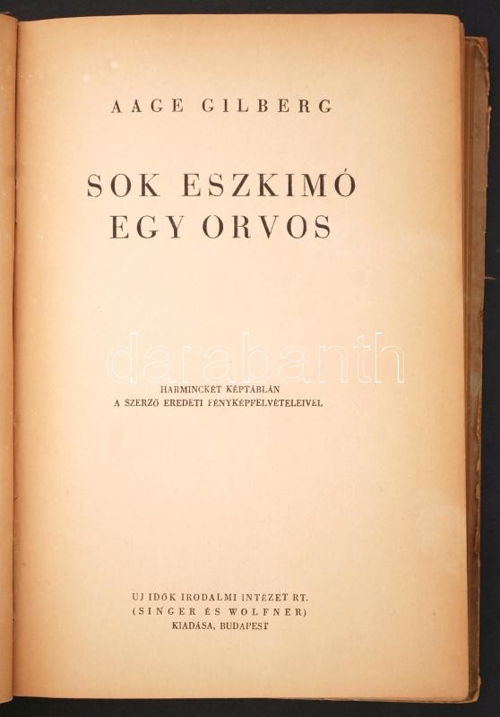 Aage Gilberg: Sok eszkimó - egy orvos. Bp., é.n., Új Idők. Kiadói félvászon-kötésben.