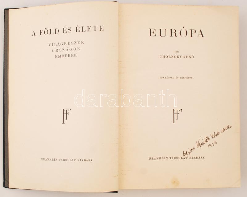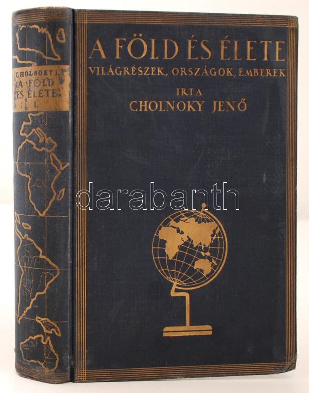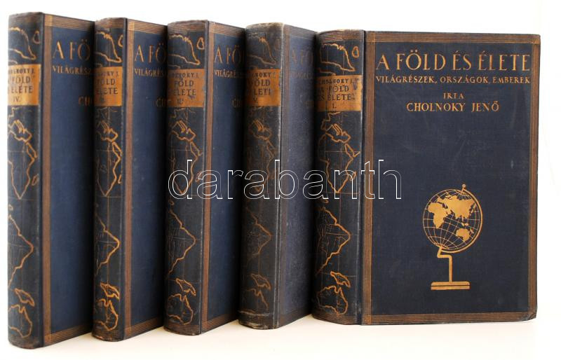 Cholnoky Jenő: A Föld és élete I-V. kötet.Gazdag képanyaggal. Egységes, kissé kopottas kiadói egészvászon-kötésben. Csak az V. kötetben van térkép.