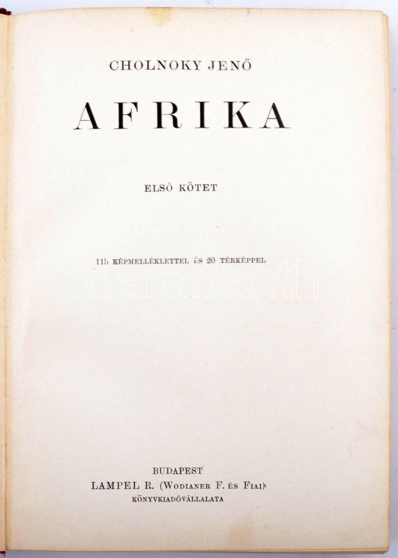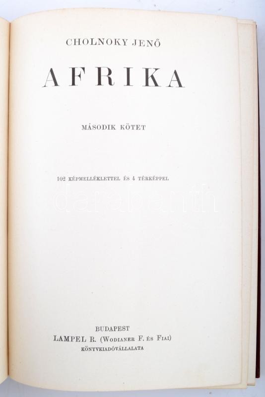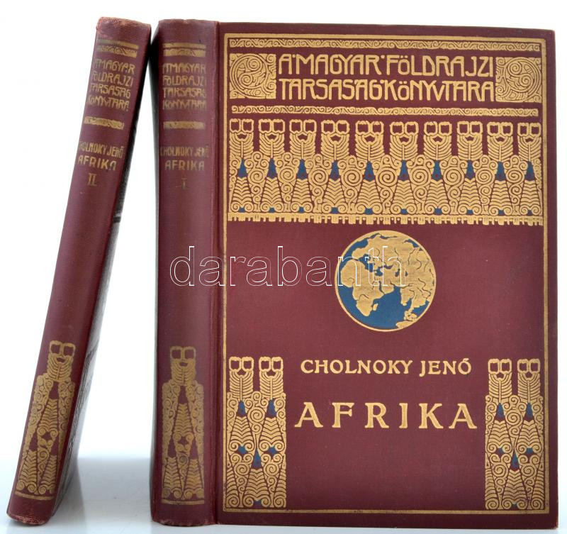 Cholnoky Jenő: Afrika. I-II. kötet. 102 képmelléklettel és 4 térképpel. A Magyar Földrajzi Társaság Könyvtára. Bp., é.n., Lampel. Kiadói aranyozott egészvászon sorozatkötésben, szép állapotban.