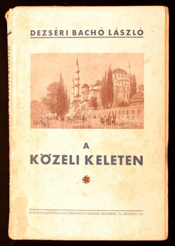Dezséri Bachó László: A közeli keleten. Benyomások, útijegyzetek, a Levante országaiból. Bp., 1935, Stádium. 242 p. Kiadói, kissé kopottas papírkötésben.