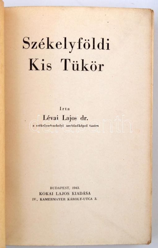 Dr. Lévai Lajos: Székelyföldi kis tükör Bp., 1942, Kókai. Fotókkal, térképekkel. Kiadói papírkötésben, jó állapotban.