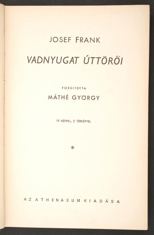 Josef Frank: Vadnyugat úttörői. Ismeretlen világok. Bp., é.n., Athenaeum. Kiadói aranyozott egészvászon-kötésben.
