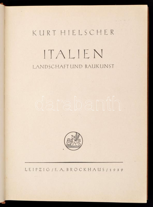 Kurt Hielscher: Italien. Leipzig., 1939, Brockhaus. 240 p. kiadói egészvászon-kötésben, számos képpel. Kissé dohos példány.